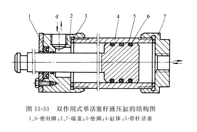 活塞式液壓缸可分為單桿式和雙桿式兩種結(jié)構(gòu),其固定方式由缸體固定和活塞桿固定兩種,按液壓力的作用情況有單作用式和雙作用式。在單作用式液壓缸中,壓力油只供液壓缸的一腔,靠液壓力使缸實現(xiàn)單方向運動,反方向運動則靠外力(如彈簧力、自重或外部載荷等)來實現(xiàn);而雙作用液壓缸活塞兩個方向的運動則通過兩腔交替進油,靠液壓力的作用來完成。